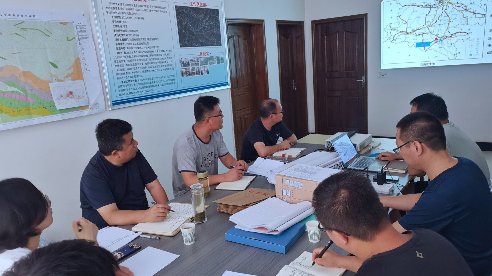 專家檢查組首先聽取了項(xiàng)目負(fù)責(zé)人對(duì)項(xiàng)目實(shí)施情況的詳細(xì)匯報(bào)。隨后,深入野外實(shí)地現(xiàn)場(chǎng)檢查探礦工程施工見礦情況、綠色勘查情況等,并對(duì)各類原始資料以及安全生產(chǎn)的相關(guān)資料認(rèn)真檢查。專家檢查組一致認(rèn)為陜西省紫陽(yáng)縣雙龍地區(qū)鈾金多金屬礦普查項(xiàng)目的找礦成果較為突出,各類原始資料、質(zhì)量檢查記錄齊全,資料綜合整理及時(shí),野外工作總結(jié)和認(rèn)識(shí)基本客觀準(zhǔn)確,項(xiàng)目標(biāo)準(zhǔn)化建設(shè)、安全管理工作等方面工作扎實(shí),取得實(shí)效。