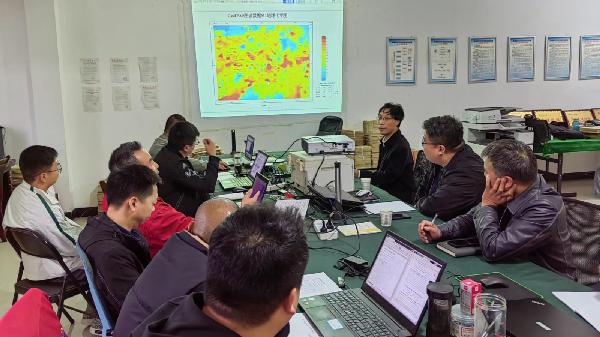 王義忠對黃泥坪重點區(qū)域的物探極化率平面成果給予了高度的認可,并結(jié)合自身以往的工作經(jīng)驗對黃泥坪地區(qū)的地質(zhì)背景和礦體的賦存情況做了詳細交流,為后續(xù)工作開展和綜合解釋提供了極大的幫助。