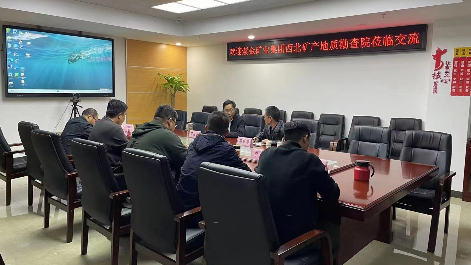 11月4日,紫金礦業集團西北礦產地質勘查院院長莫新華一行蒞臨公司考察交流。公司黨委書記、董事長鄧盛波參加座談。