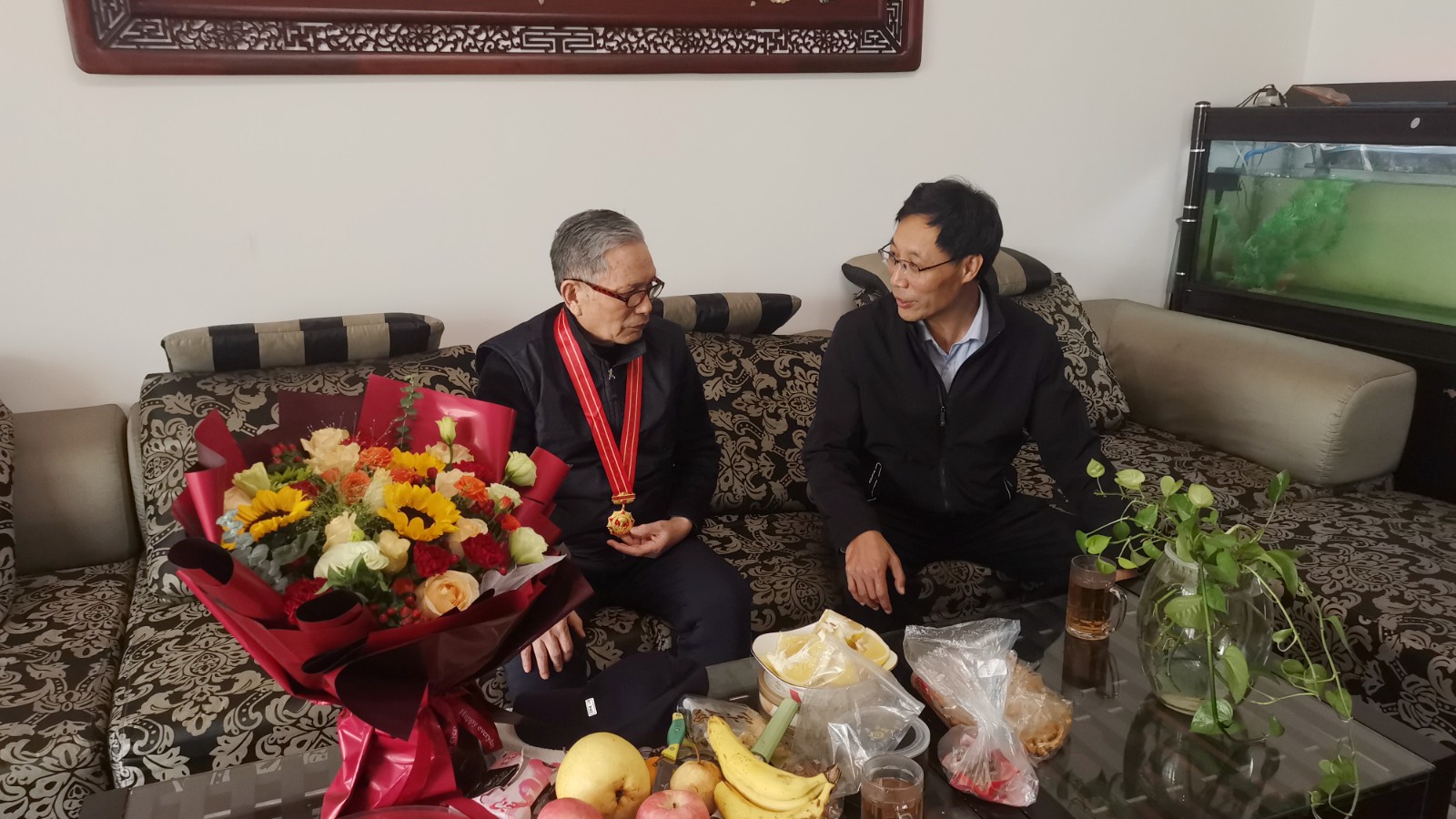 公司黨委書記、董事長鄧盛波前往在西安居住的兩位老同志家中走訪慰問,與老同志熱情親切交談,回憶過去走過的崢嶸歲月。鄧盛波首先向老同志們說明了公司的發(fā)展情況,詳細(xì)詢問了老同志們的身體狀況及生活狀況,并代表公司黨委對他們及老一輩核地質(zhì)人為核工業(yè)事業(yè)做出的貢獻(xiàn)表達(dá)了誠摯感謝,并囑咐他們保重身體。隨后為他們佩戴了“我國第一顆原子彈爆炸成功60周年紀(jì)念章”。