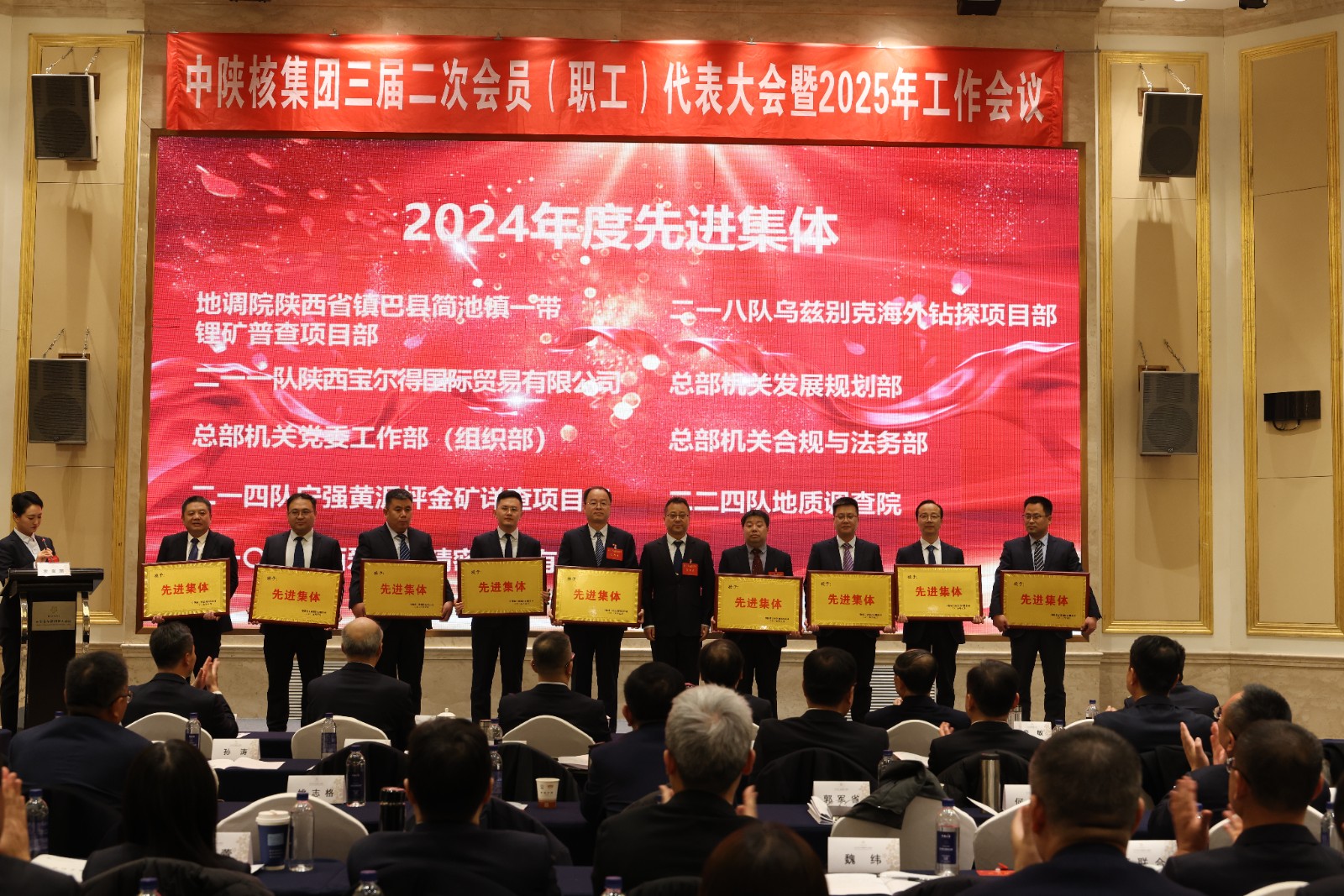 2025118日,中陜核集團召開三屆二次會員(職工)代表大會暨2025年工作會議,公司榮獲集團“創新創業獎”、黃泥坪金礦詳查項目組榮獲集團“先進集體”和“安全環保先進集體”榮譽稱號。