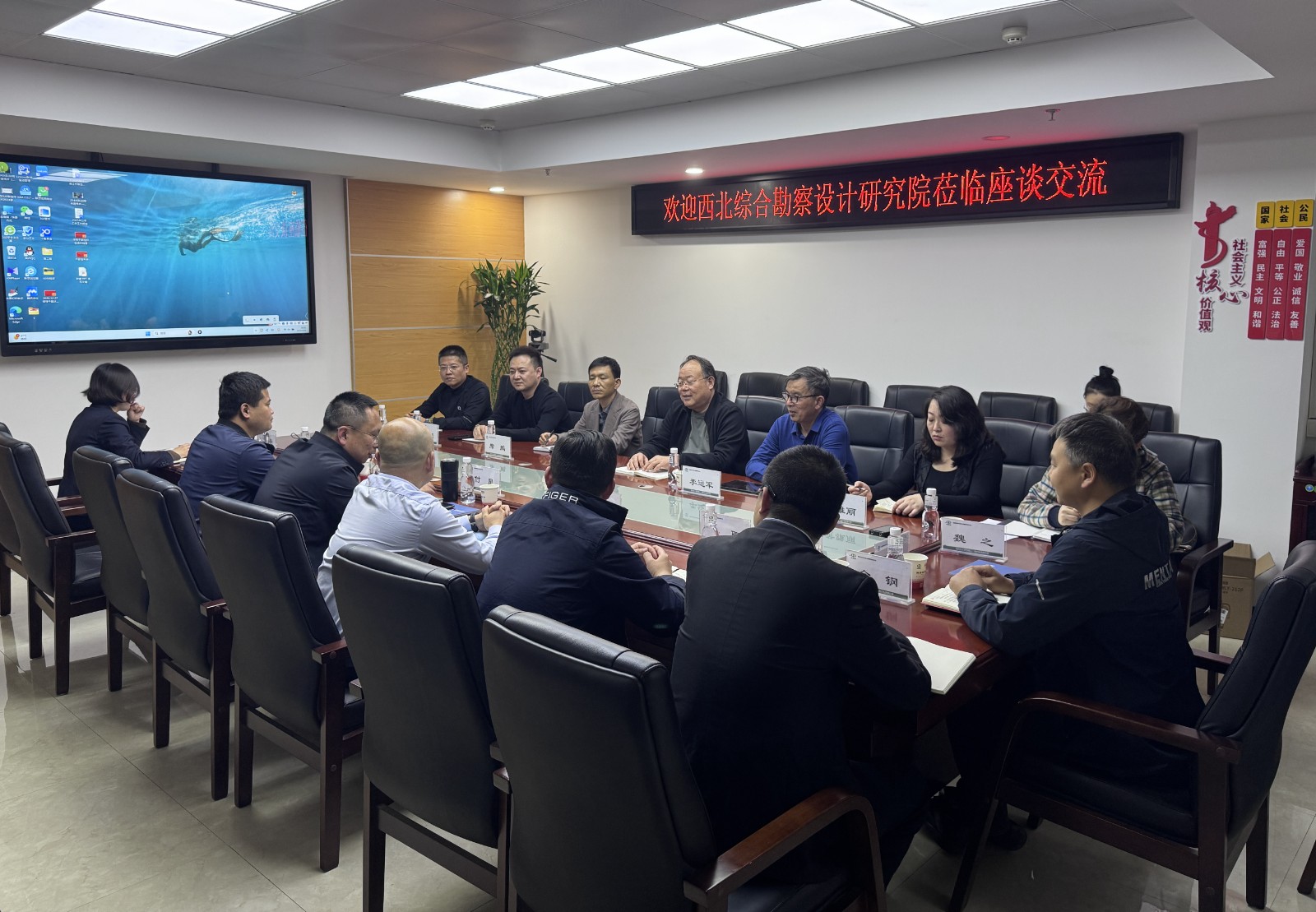324日下午,集團公司總工程師、西北綜合勘察設計研究院黨委書記、院長燕建龍一行到公司開展座談交流,公司黨委書記、董事長付星主持會議。