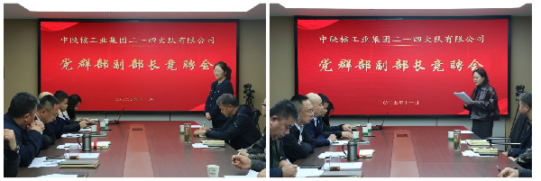 為進一步優化干部隊伍結構,調動干部勇于擔當、干事創業的熱情,激發干部隊伍活力。2025年11月18日,中陜核二一四隊在中陜核資源大廈11樓會議室組織召開黨群工作部副部長公開競聘會。公司領導班子成員、中層干部及職工代表參加會議。