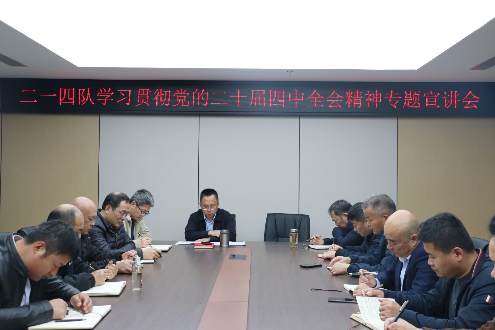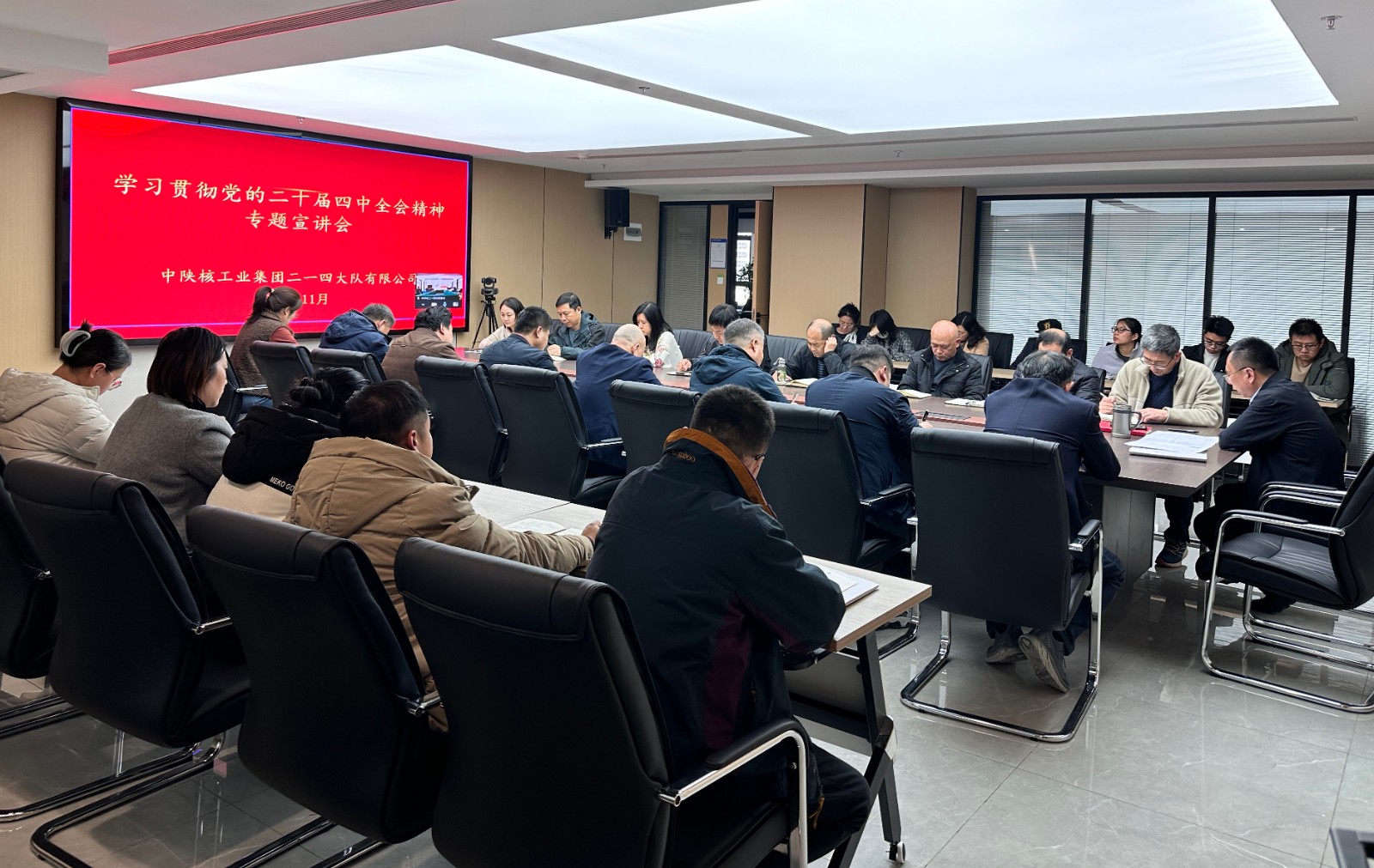 11月28日下午,中陜核工業集團二一四大隊有限公司召開學習貫徹黨的二十屆四中全會精神專題宣講會。公司黨委書記、董事長付星作專題宣講,公司領導班子及全體黨員干部職工共計50余人參加會議,城固基地通過視頻連線同步參會。
