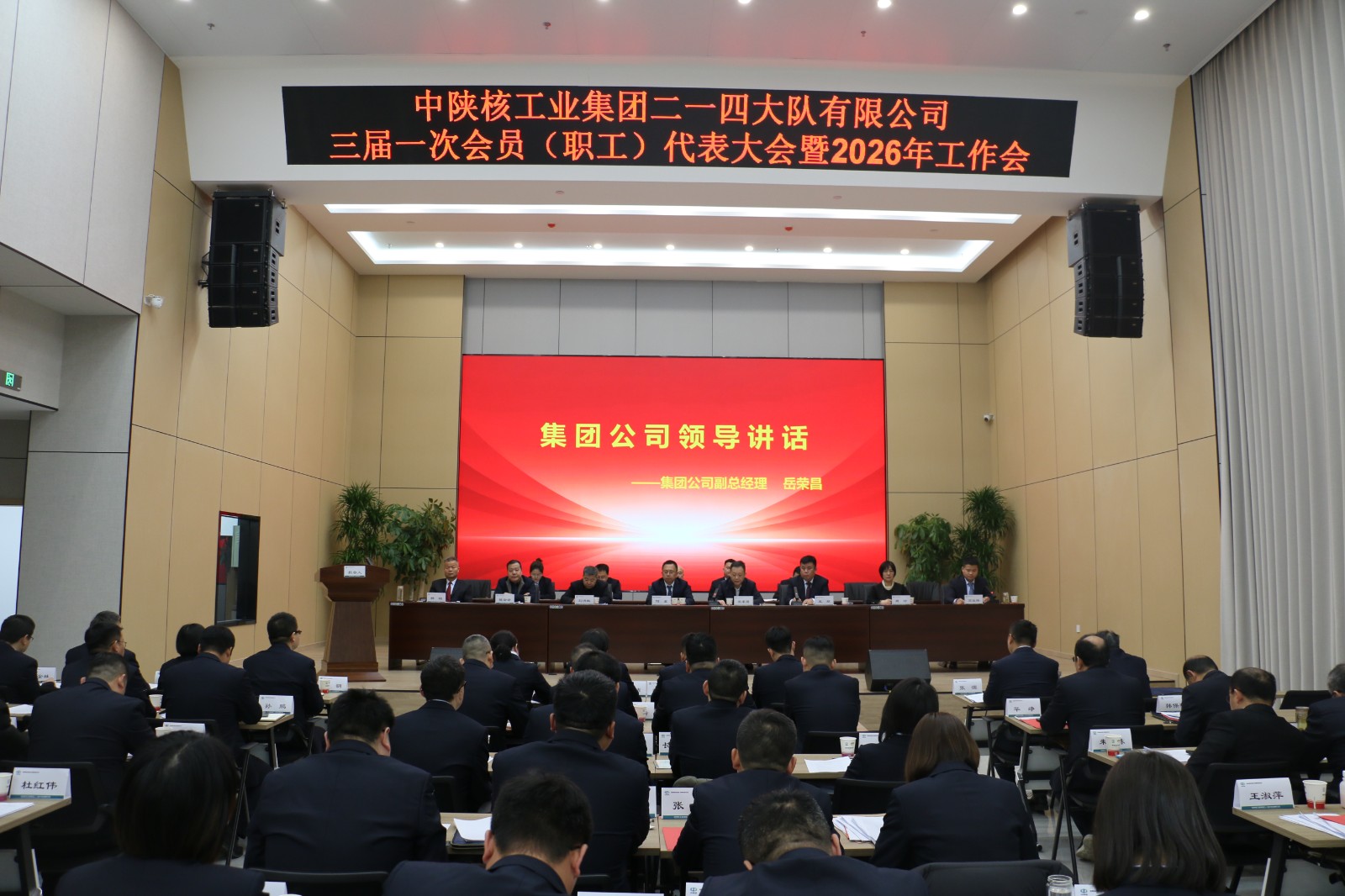 2026年1月27日,中陜核工業集團二一四大隊有限公司三屆一次會員(職工)代表大會暨2026年工作會隆重召開。會議全面總結2025年發展成果,系統部署2026年重點任務,進一步統一思想、凝聚共識,為奮力開啟“十五五”高質量發展新征程奠定堅實基礎。集團公司副總經理岳榮昌、發展規劃部部長劉洪敏和外部董事蒞臨指導,公司47名正式代表、8名列席代表參加本次會議。