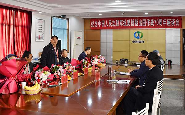 今年是中國人民志愿軍抗美援朝出國作戰(zhàn)70周年,為大力弘揚以愛國主義和革命英雄主義為核心的抗美援朝精神,10月23日上午,公司在城固基地舉辦抗美援朝出國作戰(zhàn)70周年座談會,邀請四名參加抗美援朝出國作戰(zhàn)的老戰(zhàn)士及家屬參加。座談會由公司副總經(jīng)理、工會主席董興武同志主持。