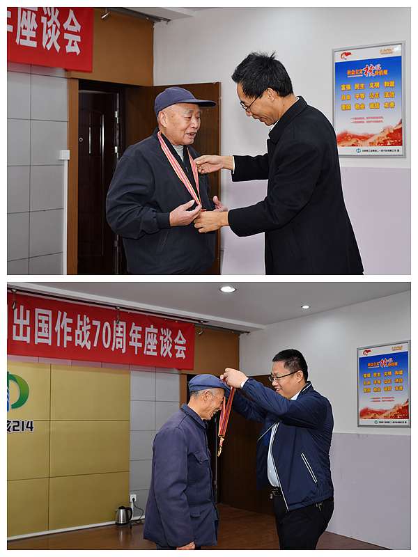 1950年10月,英雄的中國人民志愿軍將士肩負民族的期望,高舉保家衛(wèi)國、反抗侵略的正義旗幟,雄赳赳,氣昂昂,跨過鴨綠江,舍生忘死的浴血奮戰(zhàn),贏得了抗美援朝戰(zhàn)爭的偉大勝利,建立了不朽的歷史功勛。公司黨委書記、董事長鄧盛波和副總經(jīng)理、工會主席董興武親自為四名老戰(zhàn)士們佩戴了中國人民志愿軍抗美援朝出國作戰(zhàn)70周年紀(jì)念勛章,并送上鮮花,感謝這些老戰(zhàn)士為國家和單位作出的貢獻。座談會上,老戰(zhàn)士講述了當(dāng)年出國作戰(zhàn)的戰(zhàn)斗場面及參與朝鮮和平建設(shè)的經(jīng)歷,并感謝黨和國家的關(guān)心、關(guān)愛。