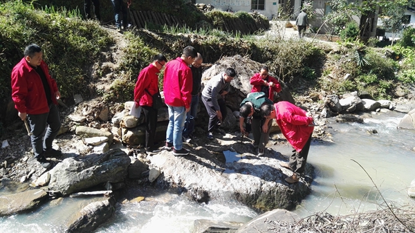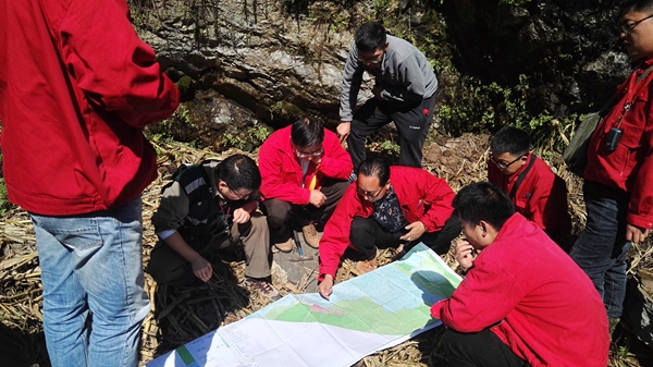 調研組在公司總工程師王義忠、副總工程師李波的陪同下到達項目組駐地,聽取了項目負責紀冬平對項目概況、地質背景等情況的詳細匯報,王義忠并針對項目具體情況進行了補充說明。在聽取了匯報后,調研組奔赴野外先后對黃泥坪漢樹溝、山觀石、柳樹坪、石罐子礦段及南沙河車渡礦段進行了實地調研,每到一處礦點都一邊聽項目人員介紹情況、一邊對照圖件進行實地查看,同時和項目技術人員一起進行交流探討,并傳授找礦經驗,為項目成員技術認識和能力提升創造了良好的學習機會。