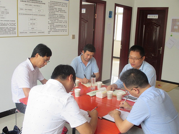 到達項目部后,鄧盛波首先查看了項目部標準化建設情況,聽取了項目負責張源從項目概況、完成實物工作量、進展與主要成果、經費管理、存在問題和下一步工作安排六個方面對監測項目執行情況的匯報,并從業務方面對項目部及水工環院提出四點要求:一是公司轉型期間,加強業務知識學習,適應新形勢,培養新型人才;二是對此類合作模式項目,加強同相關單位合作與溝通,履行好約定義務,做好技術服務;三是對于重大隱患加強防范,及時以旁站告知、電話、書面通知等方式提醒規范、安全施工;四是防范地災隱患,對水土流失災害事件及時預告。董興武對項目部安全管理資料進行了檢查并提出了整改意見:一要注意交通安全,司機要與項目部簽訂安全行車責任書;二要注意地質資料安全,妥善保管防止丟失或泄密;三要注意正確合規使用勞保用品用具,防范野外實地監測的地災隱患;四要注意夏季食品安全,謹防食用變質食物。隨后,水工環院院長祝虎林對院黨支部“不忘初心,牢記使命”主題教育開展情況作了匯報。