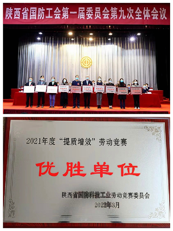 3月29號上午,陜西省國防工會第一屆委員會第九次全體會議在西安召開,公司榮獲陜西省國防科技工業(yè)勞動競賽委員會授予的2021年度“提質增效”勞動競賽優(yōu)勝單位稱號,公司劉學德同志榮獲2021年度“勞動競賽標兵”稱號,同時公司工會在國防工會2021年度重點工作完成情況考核中被評為優(yōu)秀單位。