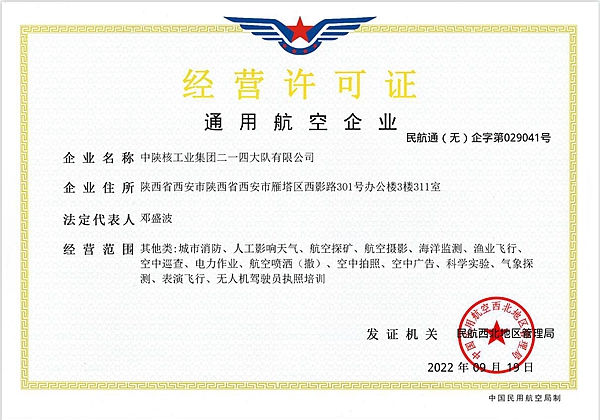 20229月19日,公司《民用航空企業經營許可證》順利通過航空探礦等8項增項審批,經營范圍擴容達16項,業務領域涵蓋無人機探礦、攝影、消防、電力、氣象、海洋漁業、科學實驗、無人機駕駛員執照培訓等。